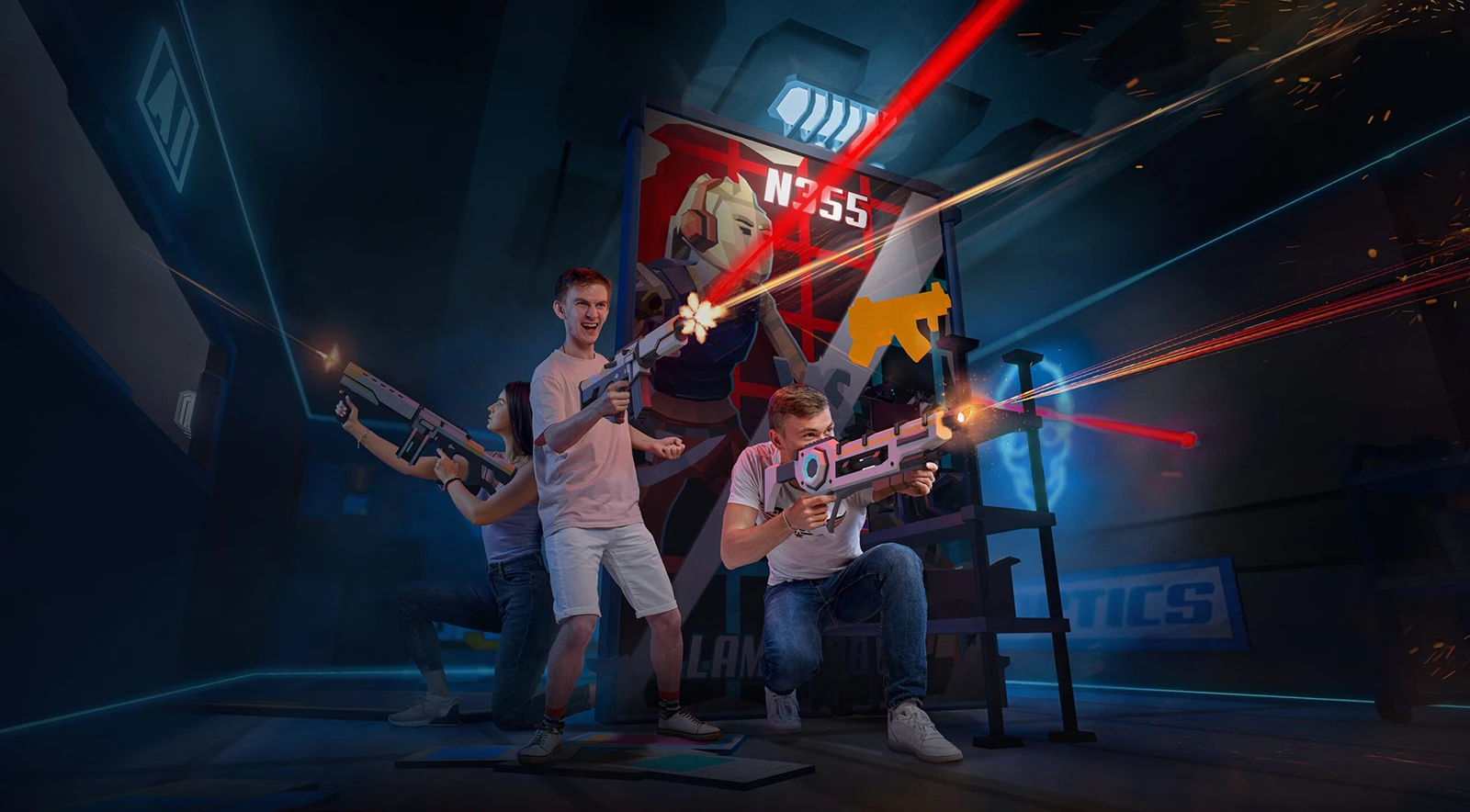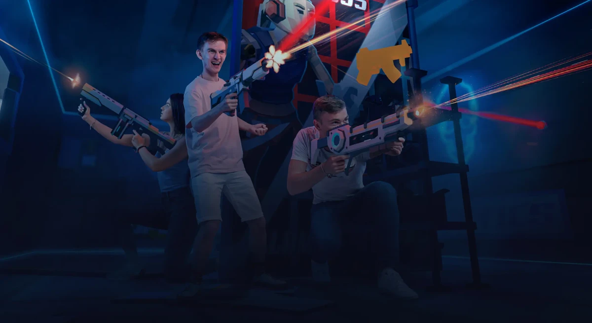 Играйте команда на команду в виртуальной реальности на арене 140 м2